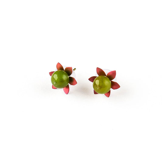 Dainty Pink 5-Petal Flower Studs with a Green Agate Beads